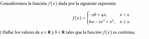 Por cierto hay alguna diferencia en cuanto si me piden continuidad en a y b o derivabilidad en a y b?