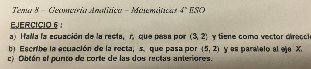 a) Halla la ecuación explícita y las paramétricas;