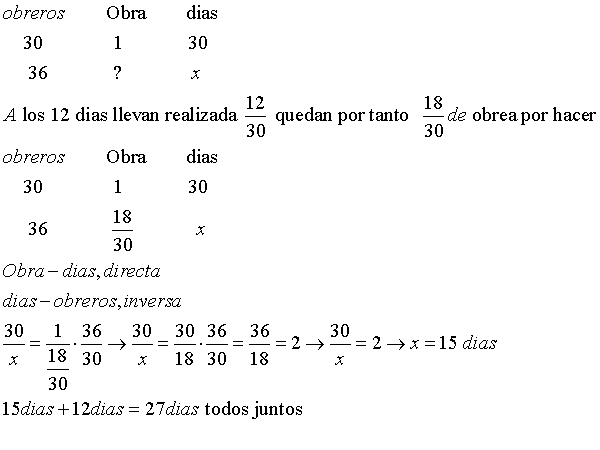 Una cuadrilla de 30 obreros debe hacer una obra en 30 d.as. Transcurridos 12 d.as