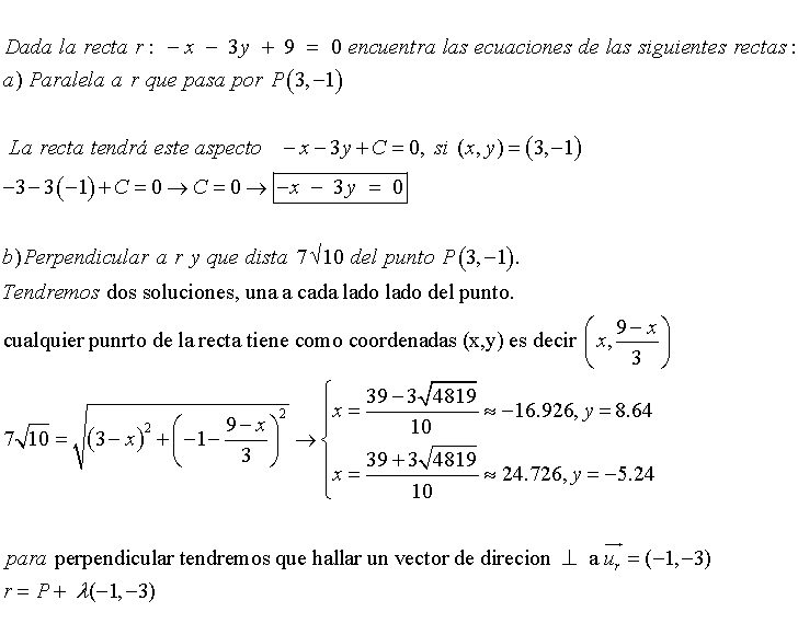 b)Perpendicular a r y que dista 7√10 del punto P(3,−1).