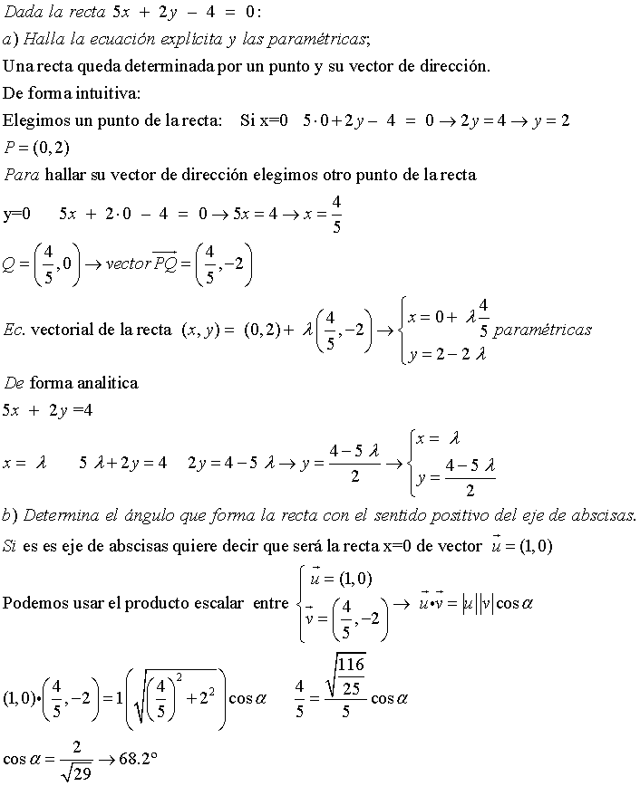 b) Determina el ángulo que forma la recta con el sentido positivo del eje de abscisas.