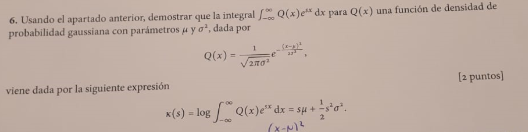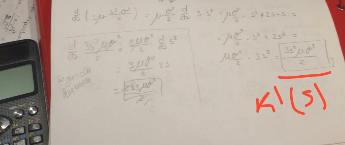 A partir de aquí interpreto: k(s)=log( e^ (sμ+(s^2*σ^2)/2) ) => k(s)=(sμ+(s^2*σ^2)/2)