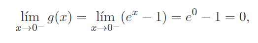 Tengo una duda, estaba buscando la continuidad de una función a trozos cuando tenía que hacer el limite x->0 y era e^x-1=>e^0-1 = -1 pero el resultado es 0 y no entiendo porque