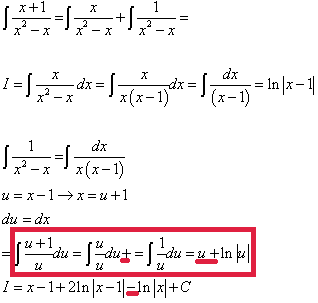 Hola unicoos,alguien que me ayude a comprender el porque del signo negativo del resultado,el 2 en 2 ln x-1 y porque u+ en u+ ln u,¿viene de u+1?