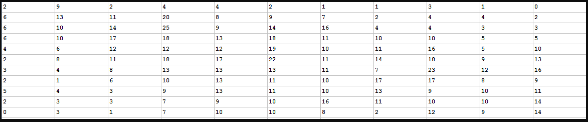 Y pasaría a tener únicamente 10 filas y 10 columnas (ahora la matriz de la imagen es 11x11) comprimiendo en una sola fila las F1 Y F2 y en una sola columna las C1 y C2