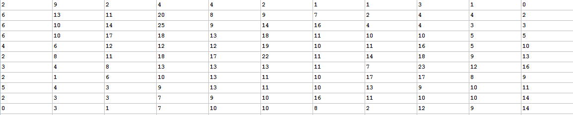 No tiene nada que ver con los vídeos, por lo que me daréis flag. Tengo dudas en sumar la FILA 1 con FILA 2 . Y COLUMNA 1 con COLUMNA 2. Antes tenia una matriz de 11x11 y tengo que pasar a una matriz de 10x10, comprimiendo en una sola fila las F1 Y F2 y en una sola columna las C1 y C2