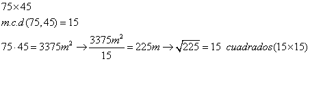 Buenas tardes a todos los UNICOOS del mundo entero, les escribo porque tengo unas dudas sobre un problema de aplicación de ecuación cuadrática que dice así: UN TERRENO DE 45 m DE LARGO Y 75 m DE ANCHO SE QUIERE DIVIDIR EN CUADRADOS IGUALES LO MÁS GRANDES POSIBLE. ¿CUÁNTO MIDE CADA LADO?, ¿CUÁNTOS CUADRADOS TENDRÍAMOS?.