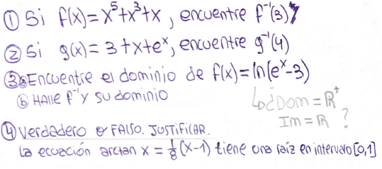Hola, qué tal? Les dejo unos ejercicios que no puedo resolver. Tiene que ver con funciones inversas. Cualquier ayuda para cualquier ejercicio será bienvenida. Les agradezo de antemano!