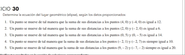 que corresponde a una Elipse con centro de simetría en el punto medio entre los puntos fijos: C(0,0), con su semieje mayor: a = 7.