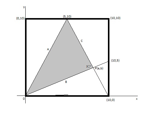 Luego, observa que el triángulo sombreado tiene vértices en los puntos: M(0,0), N(5,10) y P(a,b),