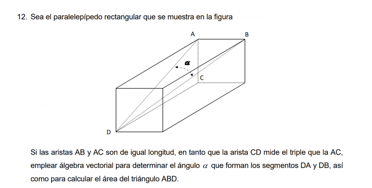 Luego, planteas la expresión del producto escalar entre los dos vectores en función de sus módulos y del ángulo determinado por ellos, y queda: