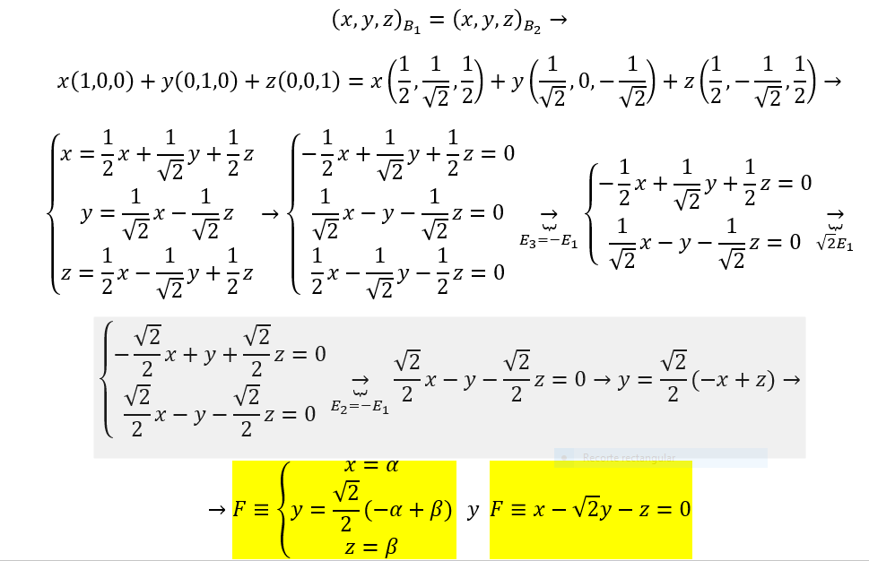 -x + 2z = 0, restas 2z en ambos miembros, y queda:
