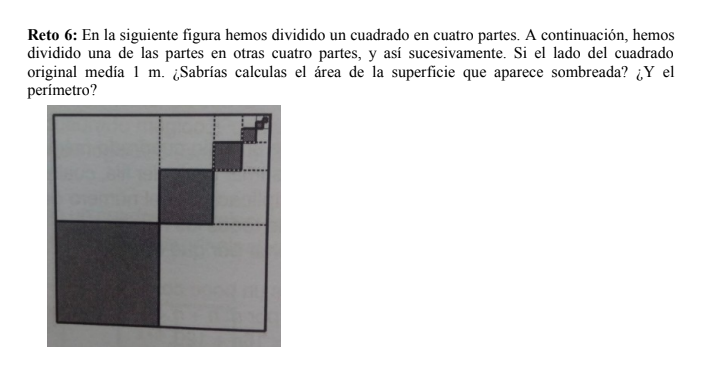 Debes calcular el área del primer cuadrado sombreado, luego el del segundo, luego el del tercero, y así sucesivamente hasta que te des cuenta que relación hay entre estos números. Cuando tengas la progresión geométrica donde cada término es el área de cada uno de los cuadrados sombreados solamente tendrás que sumar todos estos términos.