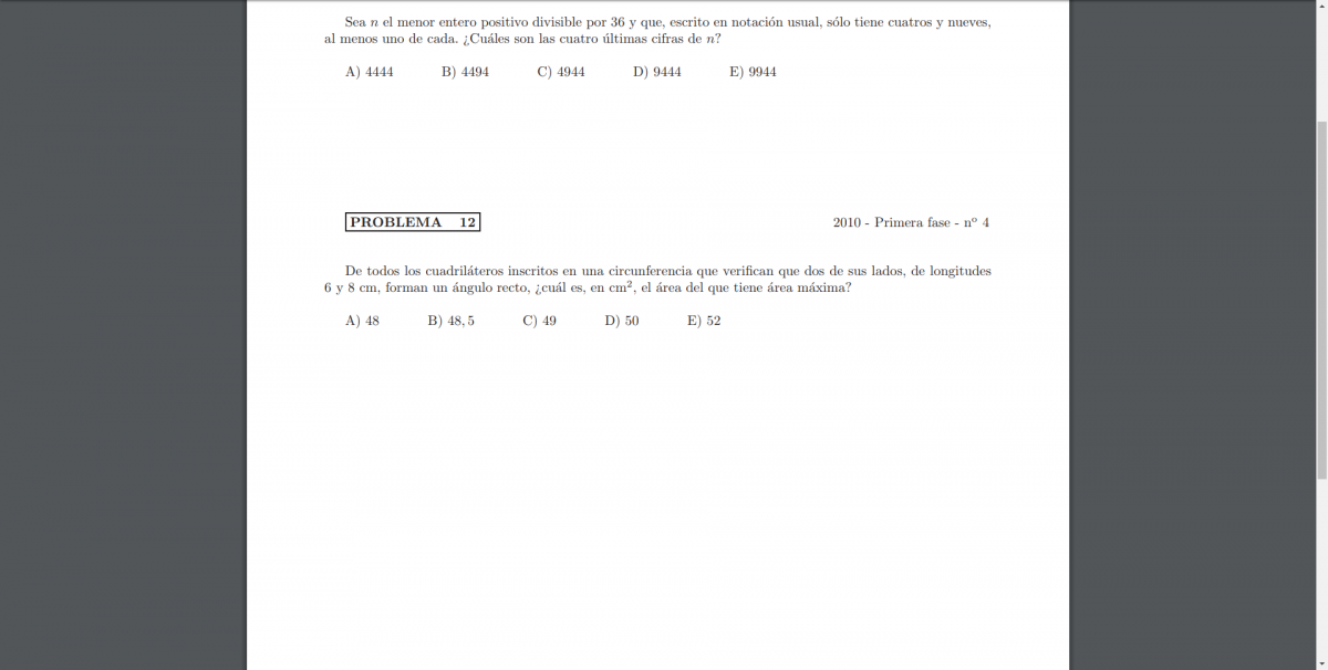 al menos uno de cada. ¿Cuales son las cuatro ultimas cifras de n? (este no tengo ni idea)