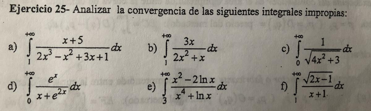 se trata del análisis de convergencia. Aquí van todas las integrales con la que tengo dificultad. Si alguien puede ayudarme, les agradecería mucho !!