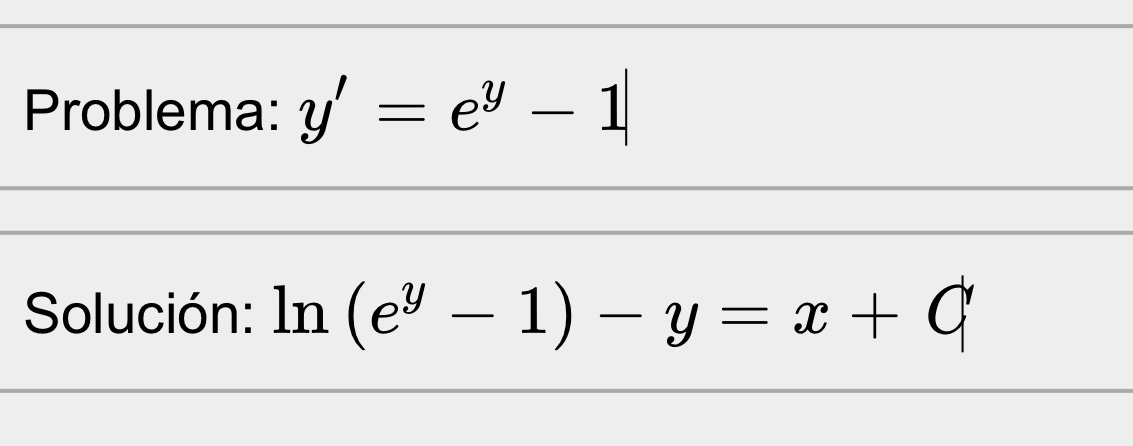 que es una solución general de la ecuación diferencial que tienes en tu enunciado, presentada en forma implícita.