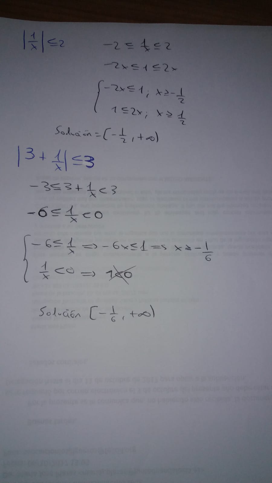 x < -1/3 y x > 0 y x ≥ -1/6,