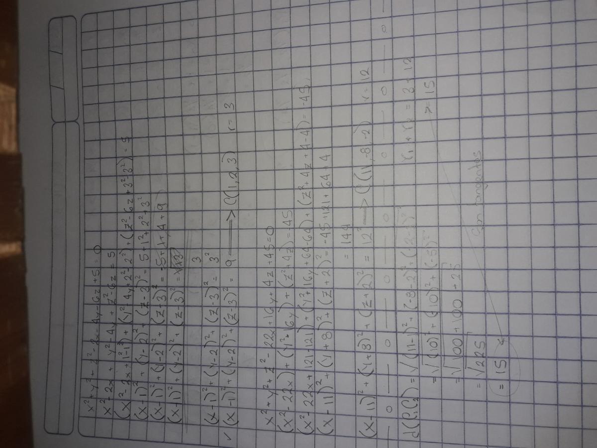 Ya desarrolle ambas ecuaciones hasta llevarlas a su forma canónica y poder hallar el centro y radio de ambas esferas.