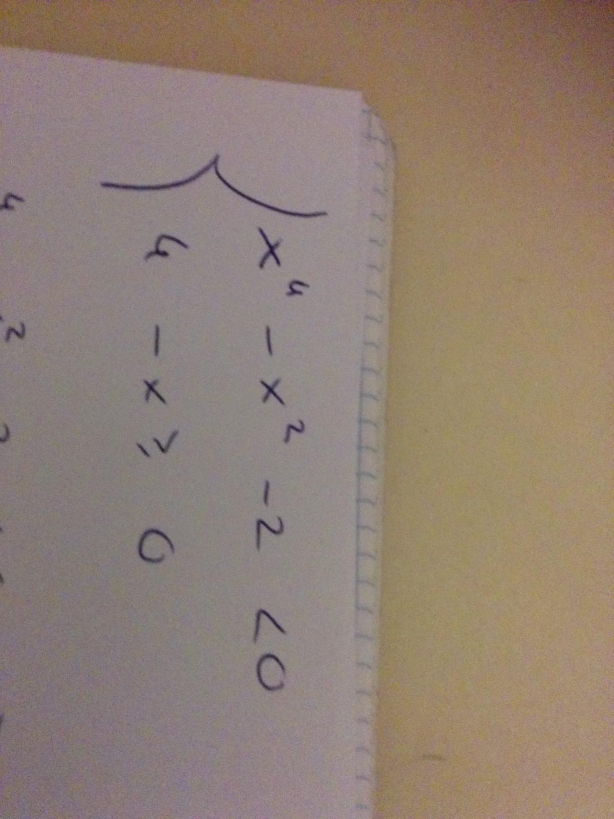 Se trata de un sistema de dos inecuaciones con una incógnita. Lo único que he podido resolver son las x. Los valores de x que me han salido a mi son los siguientes: ±raiz de dos y 4. ¿Es correcto?