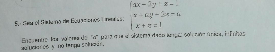 holaa alguien me podria ayudar con esto.. a mi me da que a=1 unica solucion, a=o no hay solucion y a=2 tiene infinitas soluciones no se si este bien