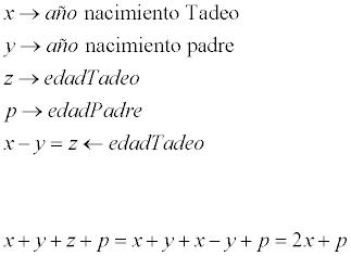Tadeo y su papá nacieron en el mes de septiembre, Tadeo escribió el año en el que nació el y el año en el que nació su papá, después escribió su edad y la edad de su papá si al final suma los cuatro números que escribió , ¿Cual fue el resultado de la suma de Tadeo?