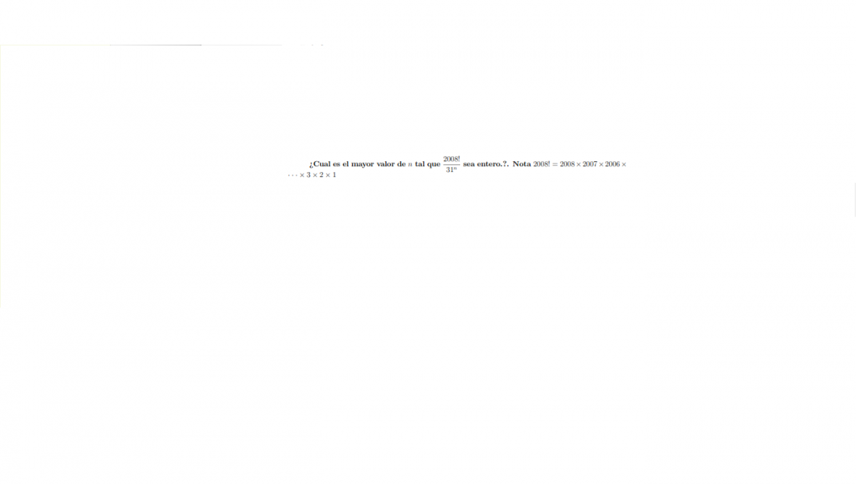Por lo tanto, tienes que el factorial de 2008 tiene sesenta y cuatro factores que son múltiplos de 31, y uno solo que es múltiplo de 31*31, y como 31 es un número primo observa que estos son los únicos factores múltiplos de 31 en este factorial, por lo que puedes concluir que: