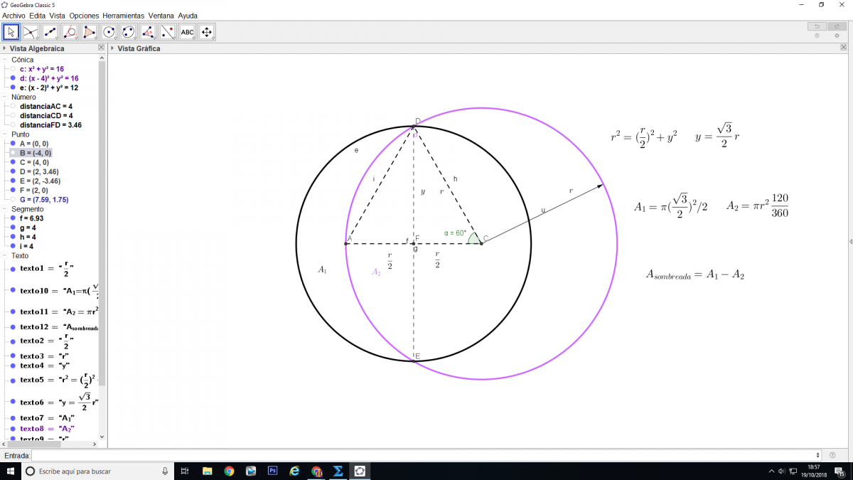 Y ya conocemos los 3 lados del triangulo total, x = 2, c = 2, y el dato = 2.