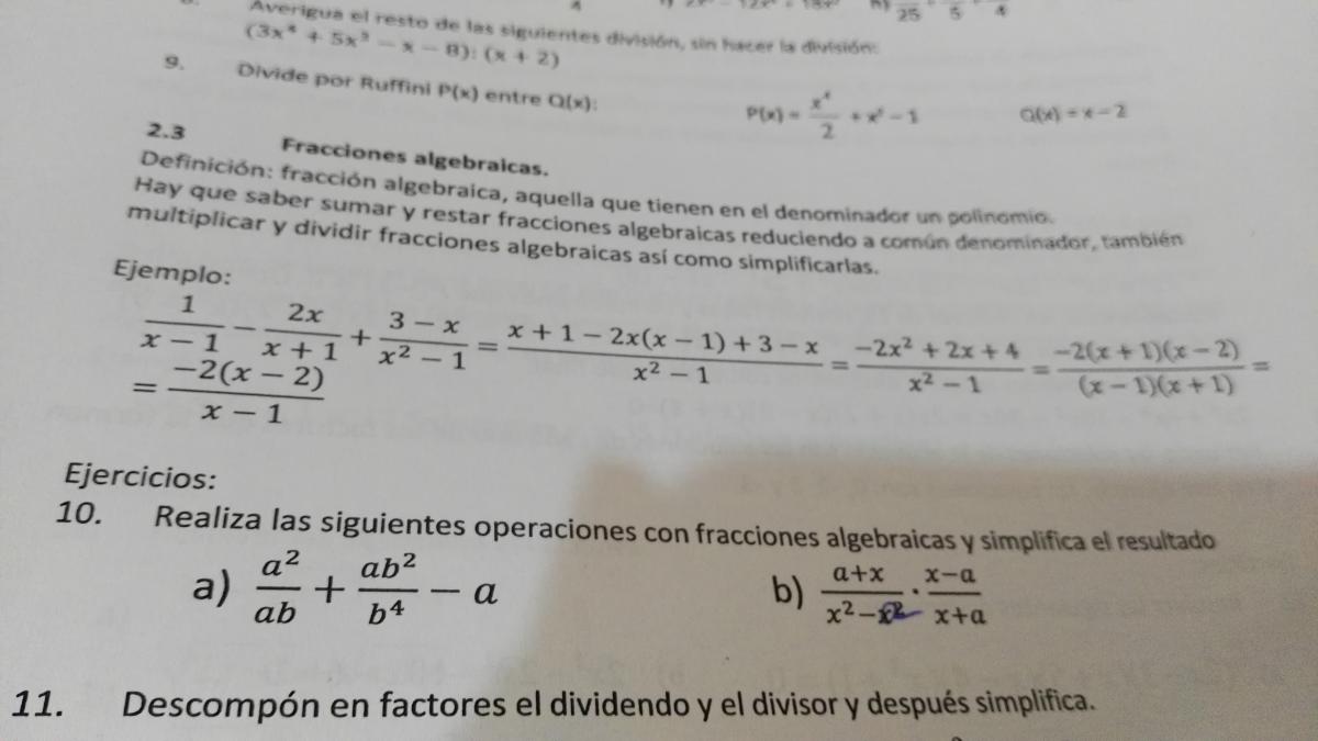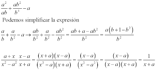 a2 / ab + ab2 / b4 - a = simplificas en el primer término, simplificas en el segundo término, y queda: