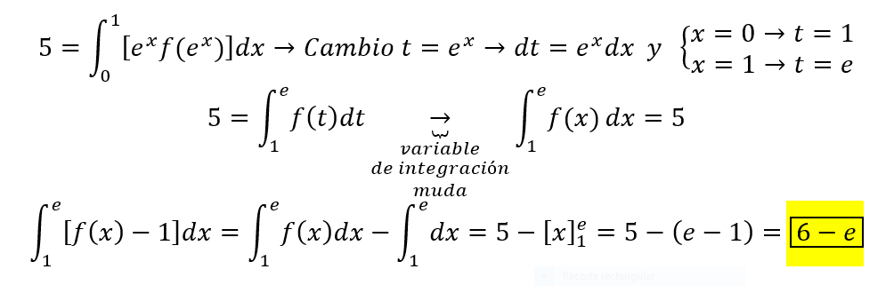 w = ex (observa que toma los valores e0 = 1 y e1 = e en los límites de integración), de donde tienes: