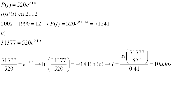 t = ln(31377/520)/0,41 (en años, contados a partir de 1990),