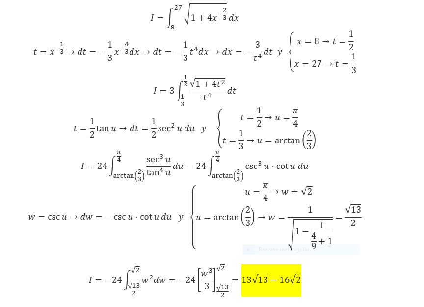 Luego, aplicas el método en la integral secundaria, y la integral de la función cuya expresión tienes en tu enunciado, queda