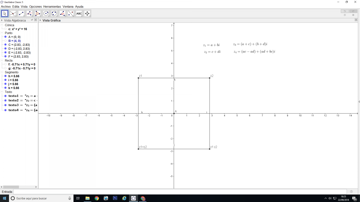 Encuentra dos numeros complejos que, con su suma y su producto formen un cuadrado.