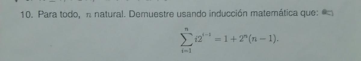 ∑(i=1,h+1) i*2i-1 = 1 + 2h+1*(h+1-1) 1 + 2h+1*h, para h ∈ ℕ, h ≥ 1,