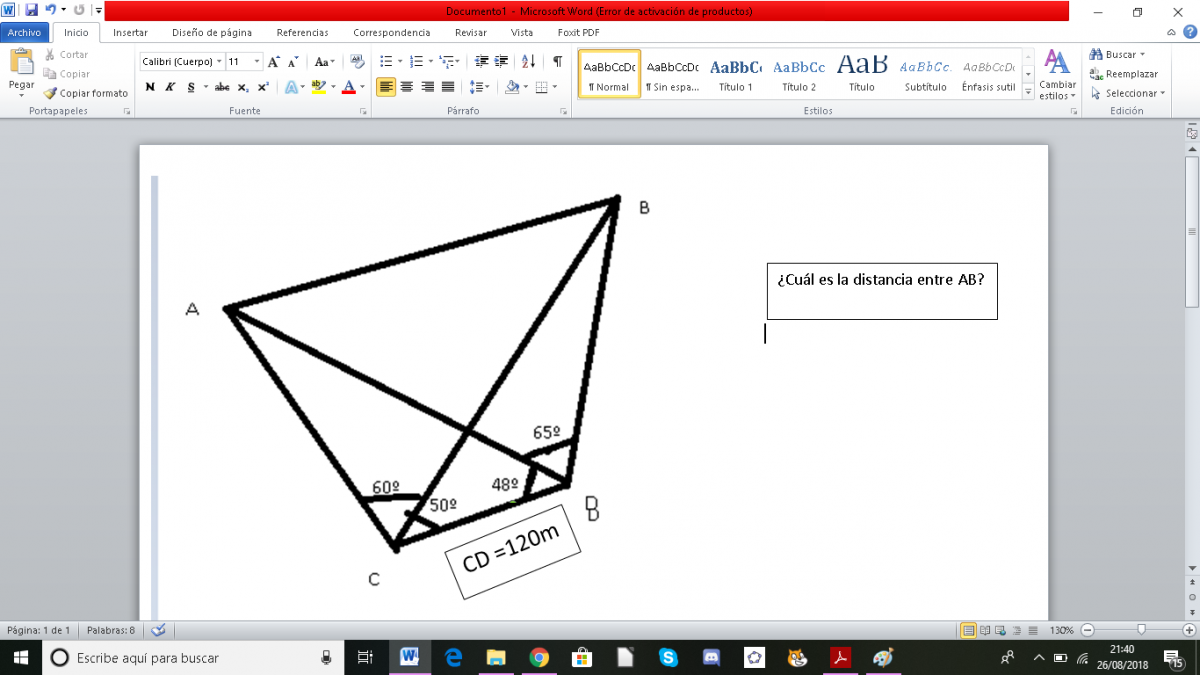 sen(50°)/DP = sen(82°)/CD, de aquí despejas: DP = sen(50°)*CD / sen(82°), reemplazas valores, resuelves, y queda: DP ≅ 92,829 m (2).
