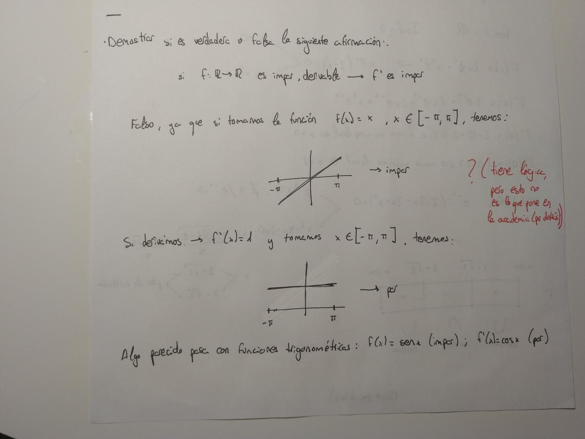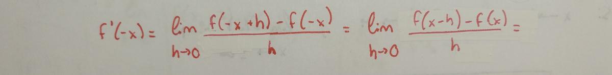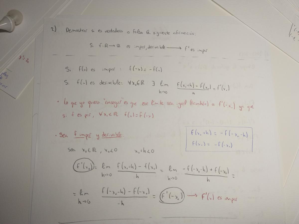 "Demostrar si es verdadera o falsa la siguiente afirmación: Si f:R->R es impar y derivable, entonces f' es impar"