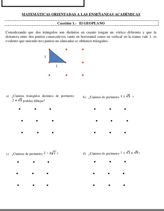 El apartado a) es inmediato. Esas medidas son de un triángulo como en el dibujo, y en cada uno de los cuadrantes se puede dibujar exactamente cuatro triángulos diferentes, 4 triángulos por 4 cuadrantes dan 16.
