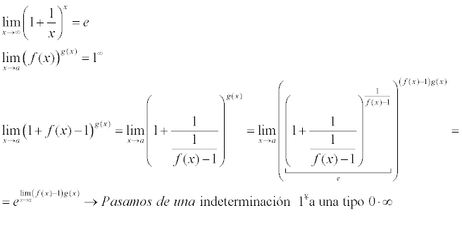 lim x->a f(x) =1 y lim x->a g(x) = infinito.