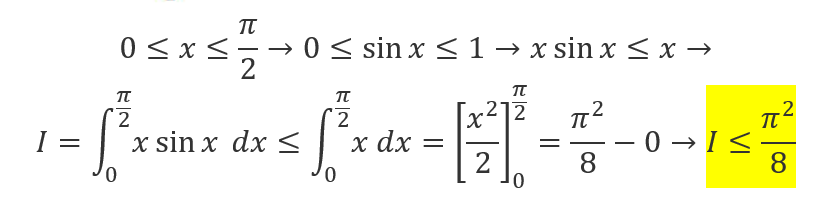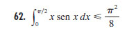 0 ≤ 0∫π/2 x*senx ≤ π2/8.