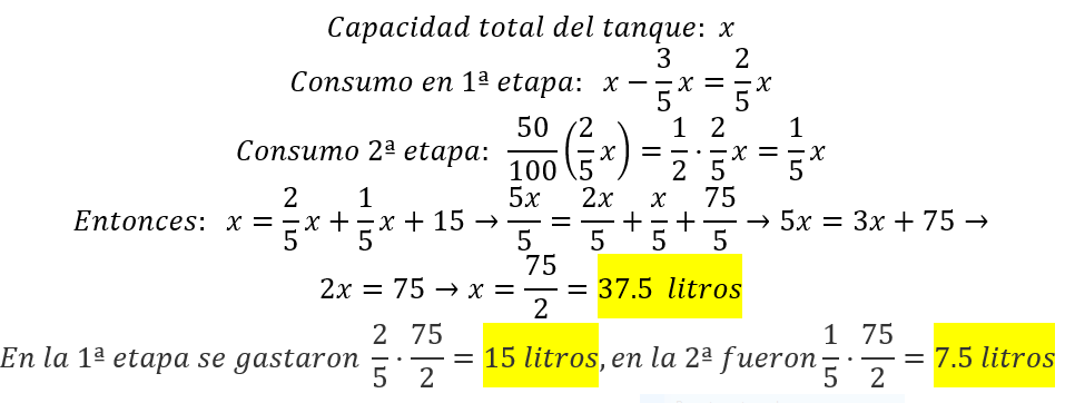 terminar la primera etapa había 3/5 de tanque. En el segundo tramo se gastó el