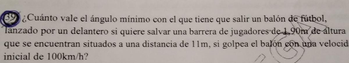 Una pequeña aclaración, la Vo es 100 km/h. = 27.78 m/s. Al despejar senα se te ha colado una gravedad de más (9.8*9.8*0.622) jajajaja, pero el resultado es correcto: 0.20