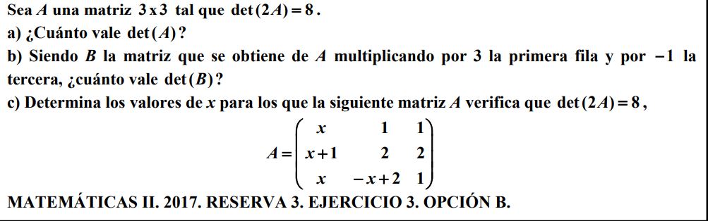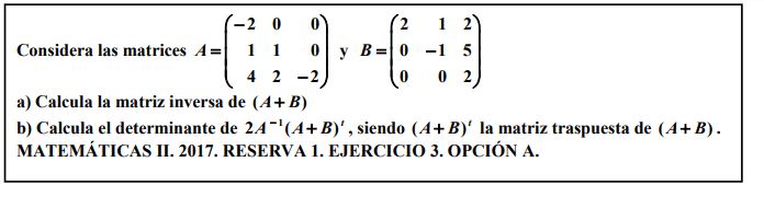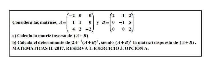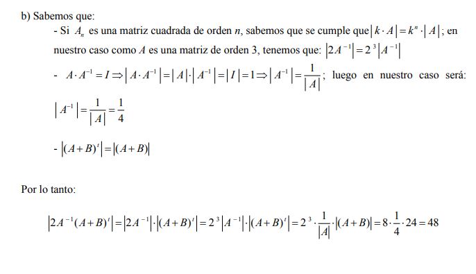 y solo queda que plantees la matriz (A+B) y calcules su determinante, y calcules el determinante de la matriz A, para luego reemplazar valores y hacer el cálculo.