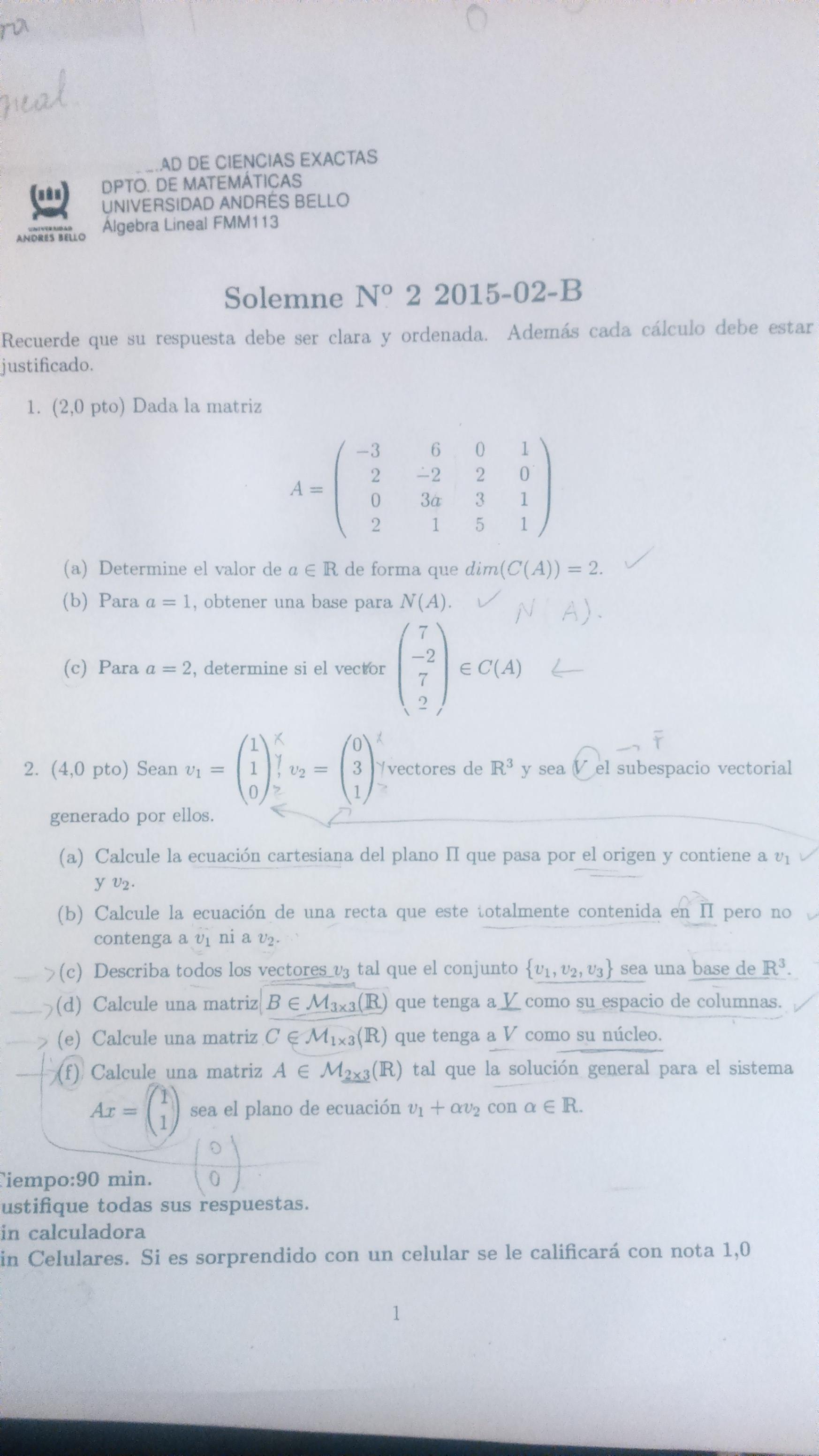 Hice esta solemne del 2015 casi completa porque creo que en la c de la 1 me falto algo, pero lo que pasa es que no estoy segura de que este bien la c,d,e de la 2 y la f la hice pero sinceramente no la entendí , me podrían explicar por favor