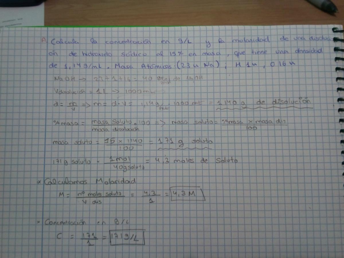 Fíjate que te dan la densidad y el volumen de una disolución de ácido oxálico. Con estos datos puedes calcular los gramos. OJO: gramos de disolución, no de ácido oxálico. El enunciado te da un dato de riqueza (5%). Esto quiere decir que de los gramos obtenidos de disolución, sólo el 5% es de ácido oxálico. Calcula este porcentaje.