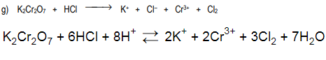 K2Cr2O7 + 14HCl------------→2KCl + 2CrCl3 + 3Cl2 +7H2O