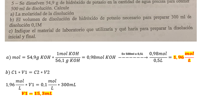 en el ejercicio 5 apartado b, tienes q calcular el volumen de disolución, pero a su ves t lo dan diciendo q preparas 300ml de disolución, no sería esta la respuesta?