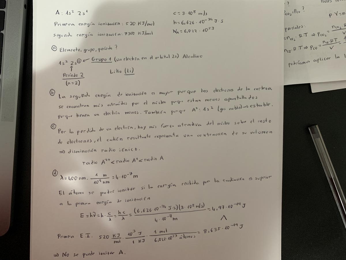 4,97x10^-19 x 6,022x10^23/1000=299Kj/mol No es posible ionizar el átomo