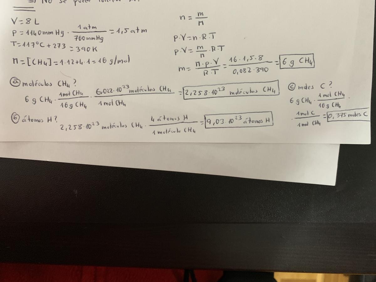 0,375 moles de CH4 x 1mol de átomos de C/1 mol de CH4 = 0,375 mol de átomos de C