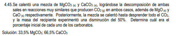 Resolviendo el sistema de ecuaciones 26,5% de CaCO3 y 73,5% de MgCO3