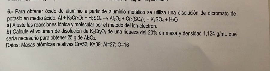 Hola puedes resolver la opción b del examen de selectividad de química de Murcia por favor !!!???