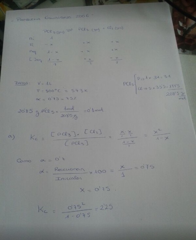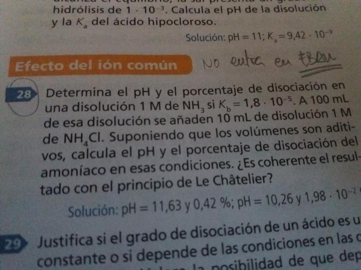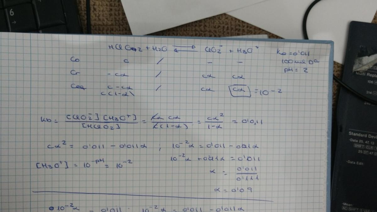 b) Calcule el grado de disociación del ácido cloroso en dicha disolución.![]()
